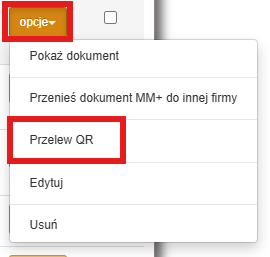 Na liście dokumentów przy fakturze, którą chcemy wprowadzić do przelewu klikamy „Opcje”