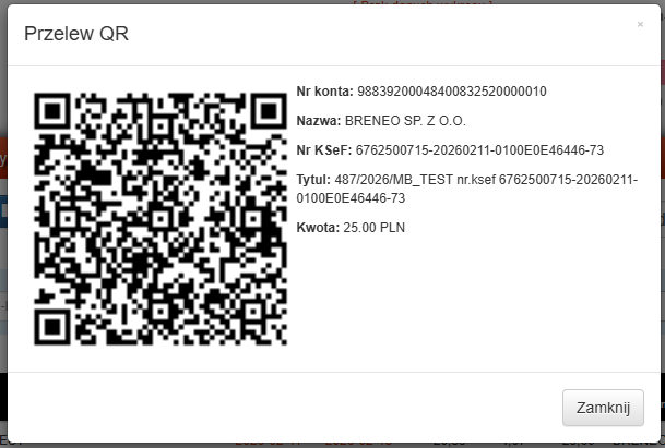 Pokaże nam się wygenerowany kod QR do przelewu, który wystarczy zeskanować w naszej aplikacji bankowej i wszystkie dane uzupełnią się automatycznie.