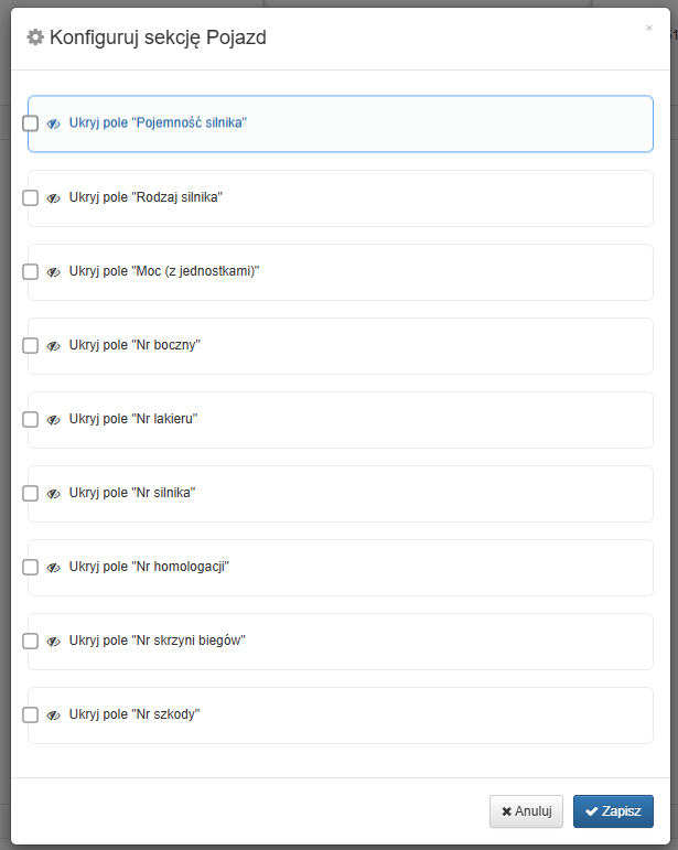 Jak w programie Warsztat24.com szybko ukryć nieużywane informacje na formatce przyjęcia auta do serwisu.